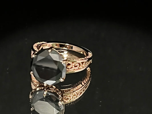 Bague or rose Diamant noir naturel